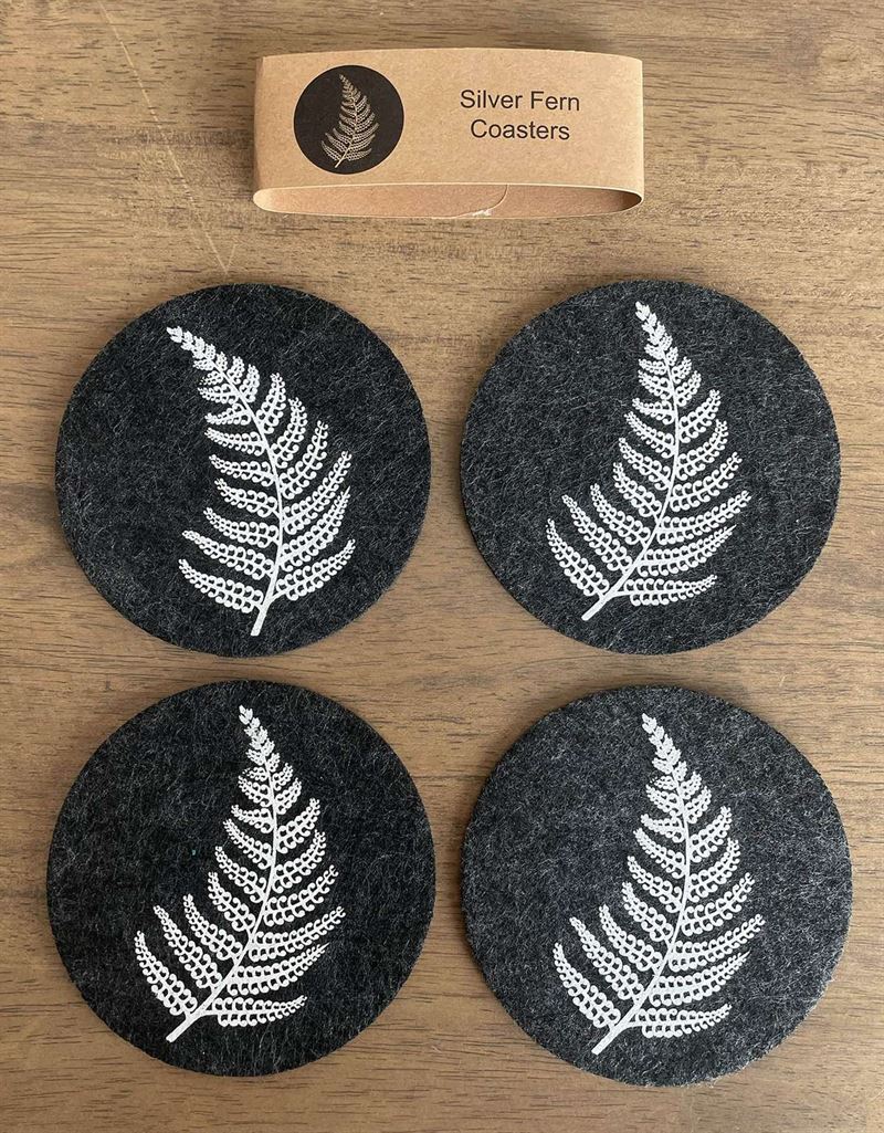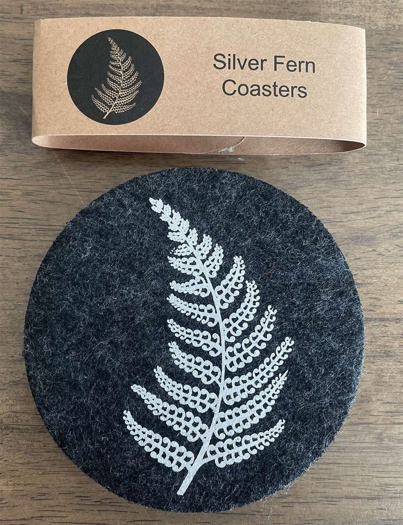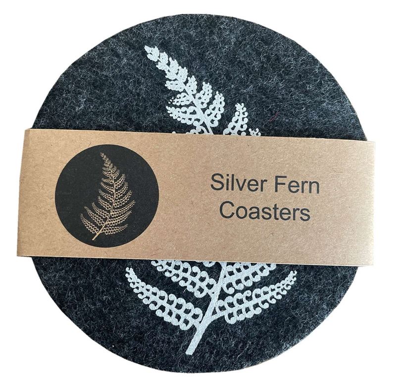Jo Luping Design - Silver Fern On Dark Grey Set of 4 - Ecofelt Coaster