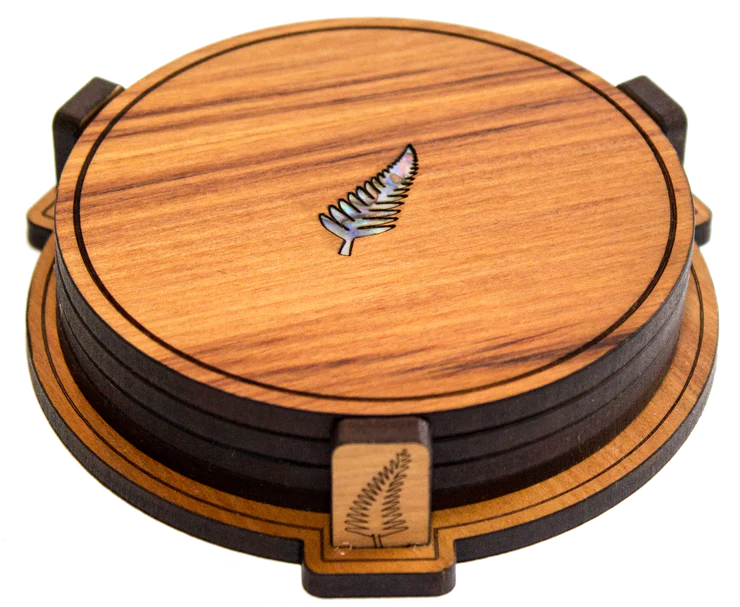 Crafted from native Rimu wood, this elegant set of four 95mm coasters comes nestled in a matching Rimu holder—a stylish storage solution that complements any home. Protect your tables and furniture from unsightly water stains and condensation damage while showcasing a beautiful local design. Perfect for gifting to friends and whānau abroad or keeping as a cherished reminder of Aotearoa's natural heritage. Locally made quality that tells a story.