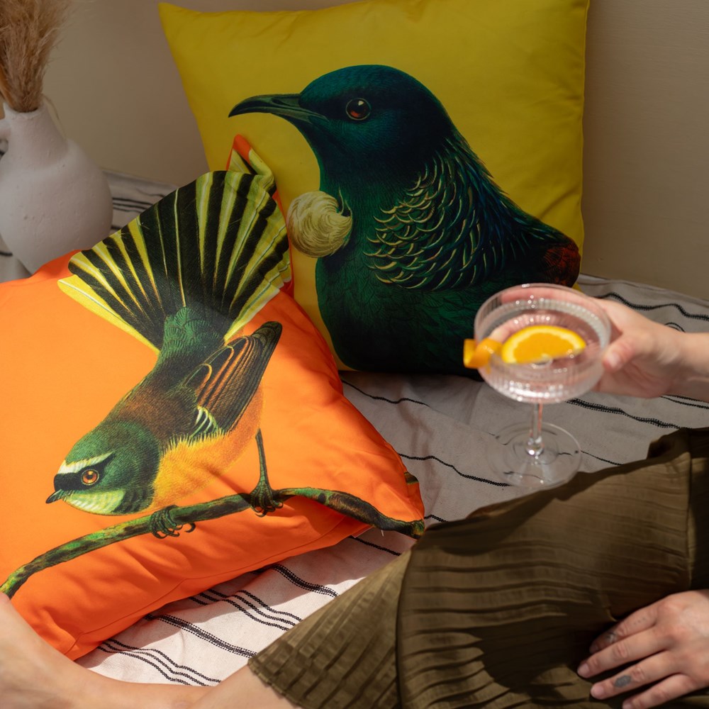 This Bright Tui Cushion Cover features a vibrant, double-sided polyester print that adds a splash of colour to any space. Measuring 550 x 550 mm, it’s perfect for both indoor and outdoor use. Celebrate New Zealand’s native beauty with this stylish and durable cover—ideal for gifting or brightening your own home. Cover only.