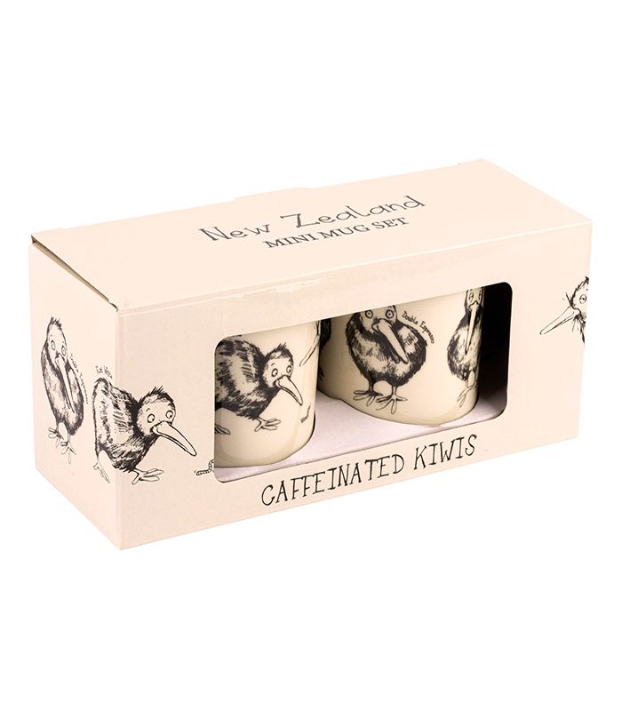 Brew up a little Kiwi magic with this charming set of two bone china mini mugs, perfect for espresso, tea, or your favourite hot beverage. Crafted from premium bone china and beautifully presented in a printed gift box, these mugs combine style with everyday practicality—both dishwasher and microwave safe for hassle-free entertaining and daily use. Ideal for gifting or treating yourself. Explore the full Caffeinated Kiwi Range to discover coordinating pieces that celebrate Aotearoa's coffee culture.