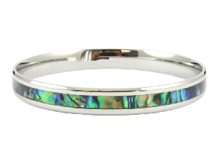 Embrace timeless beauty with this bevelled paua stainless steel bracelet, sized at 8.5" with an 8mm width and 70mm diameter. Built from medical-grade 316 stainless steel and inlaid with authentic New Zealand paua shell, it combines durability with natural radiance. The bevelled edges enhance the shell's captivating play of colour—from deep teals to shimmering greens—making it a striking yet versatile piece. An exceptional gift that celebrates heritage craftsmanship and refined taste.