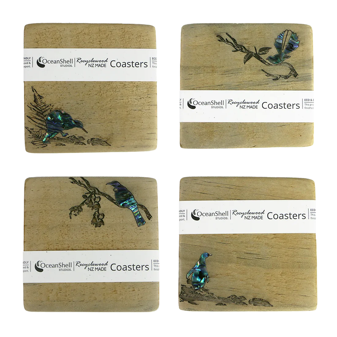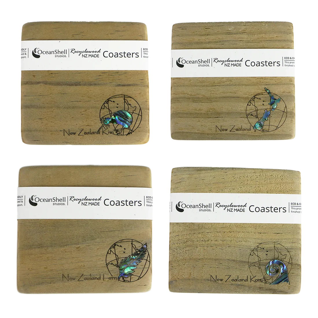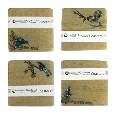 Add a touch of rustic Kiwiana to your coffee table with our handcrafted Recyclewood coasters, featuring beloved New Zealand icons.