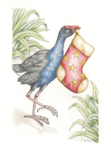 Emily Kelly - Pukeko With Stocking - Christmas Card