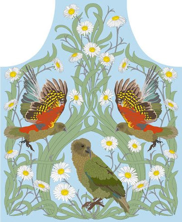Kea Apron Give the gift of alpine adventure with this bold Kea apron, featuring New Zealand's spirited mountain parrot in striking artisan design. Perfect for the outdoor enthusiast, home chef, or anyone who celebrates Aotearoa's wild character, this apron merges practicality with cultural storytelling. Crafted from quality materials with adjustable straps for all-day comfort, it's equally at home in the kitchen, garden, or studio. A thoughtful present that honours our native heritage while adding personality to everyday wearβideal for gifting to those who embrace the Kiwi spirit and love to show it.