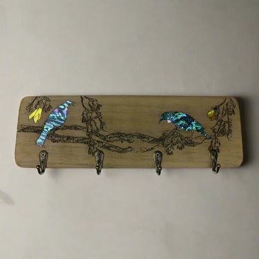 Each piece is handcrafted from upcycled timber, tumbled to create a driftwood-like finish full of natural character β complete with knots, cracks, and the occasional embedded stone. Inlaid with shimmering New Zealand pΔua shell and available in five iconic designs β Fantail, Kiwi, PΕ«keko, Penguin, and Tui β it blends functional storage with eye-catching design.