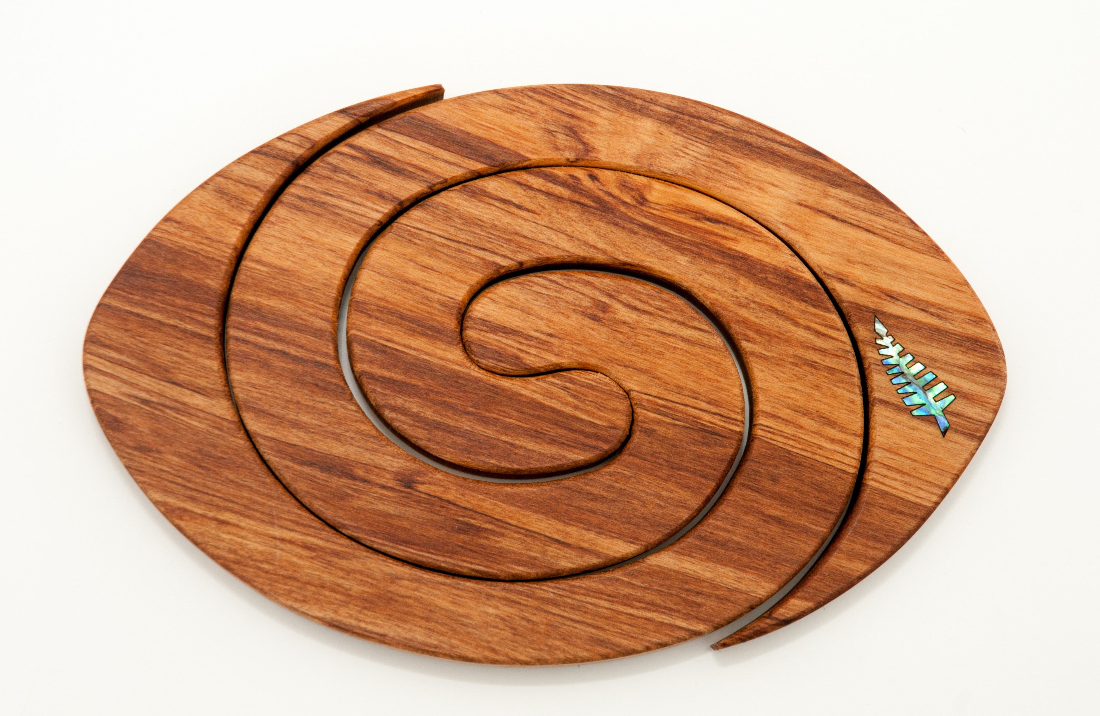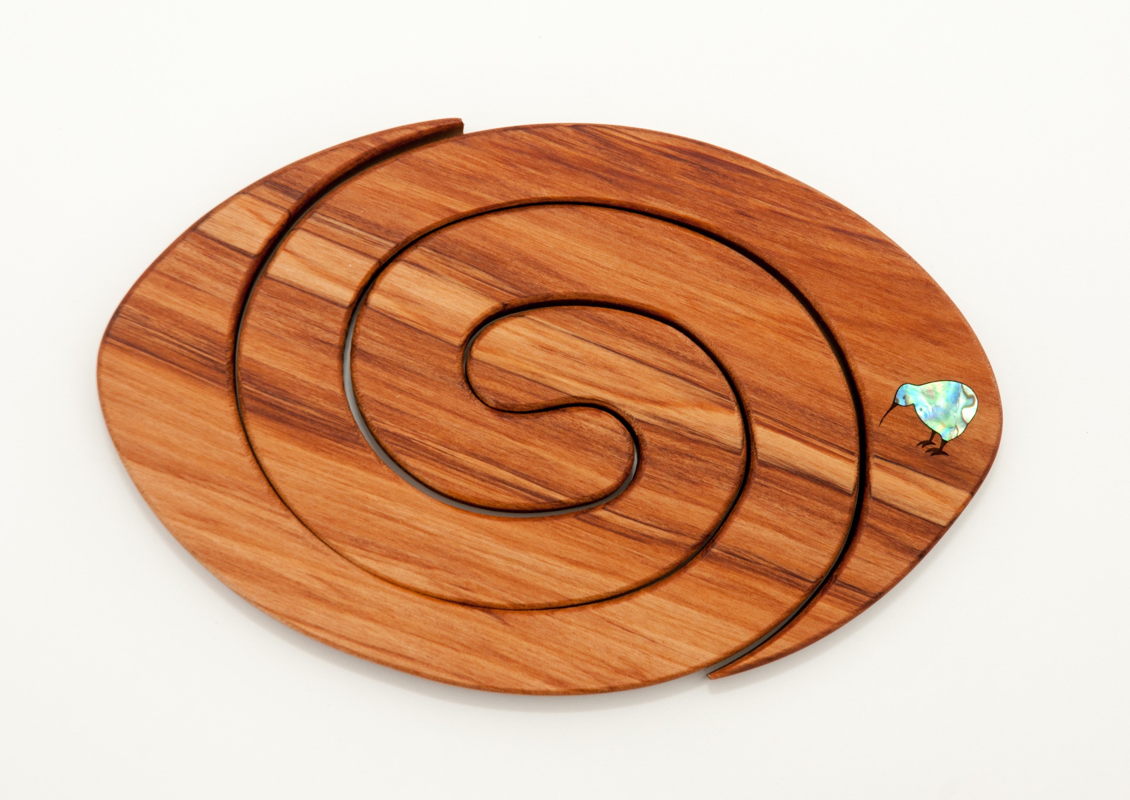This Mini Rugby Tablemat, handcrafted from solid native New Zealand Rimu, features four unique paua inlay designs. Its clever 2-in-1 design allows use as two separate mats or one, combining style and versatility. Lightweight and compact, it makes a distinctive gift for rugby enthusiasts and admirers of Kiwi craftsmanship.