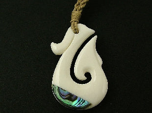Premier fish hook bone & paua pendant