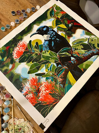 Tūī in Pōhutukawa - 40x50cm Paint by Numbers