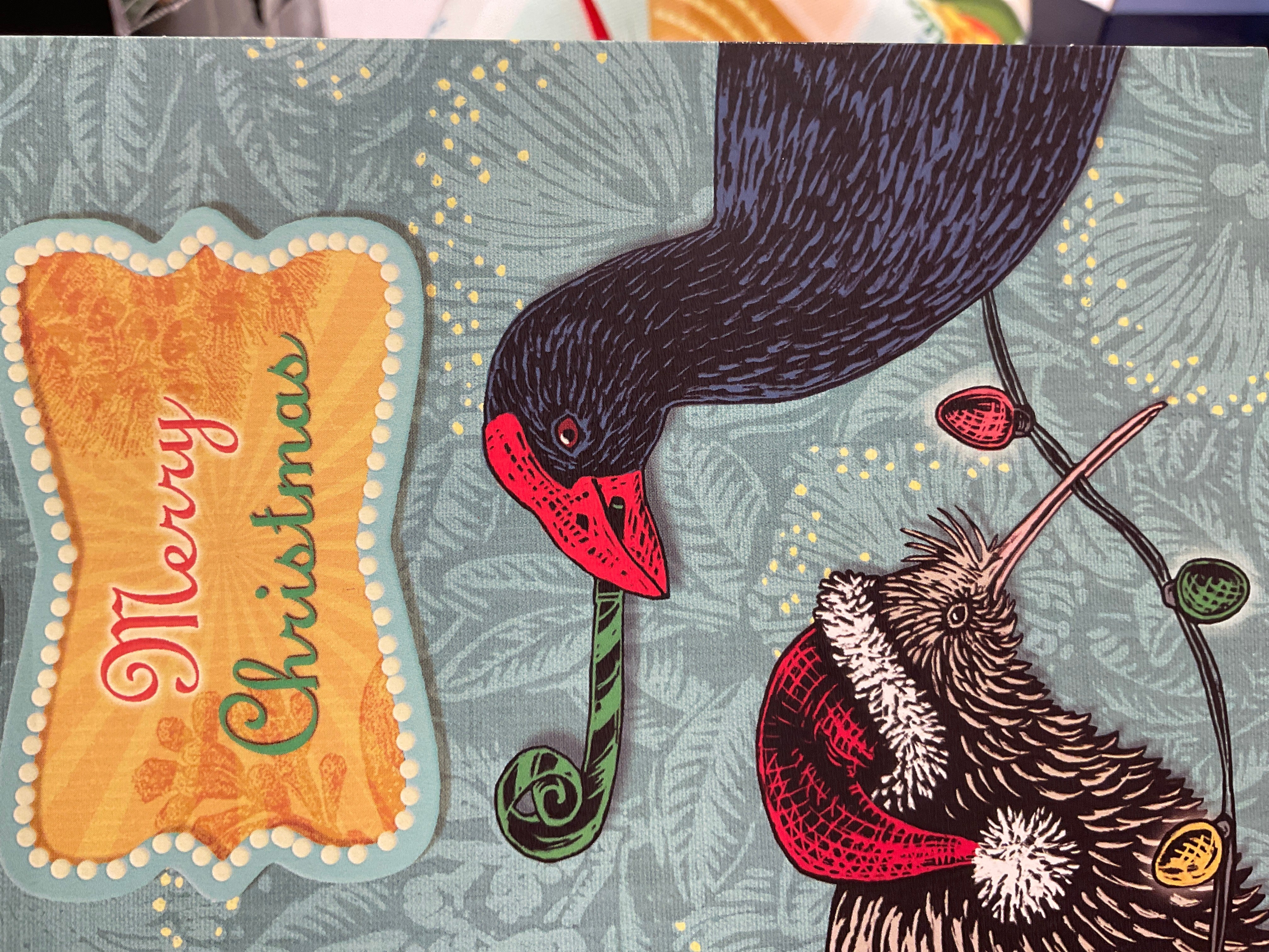 Wolfkamp & Stone - Pukeko Kiwi & Wreath Tree - Christmas notecard