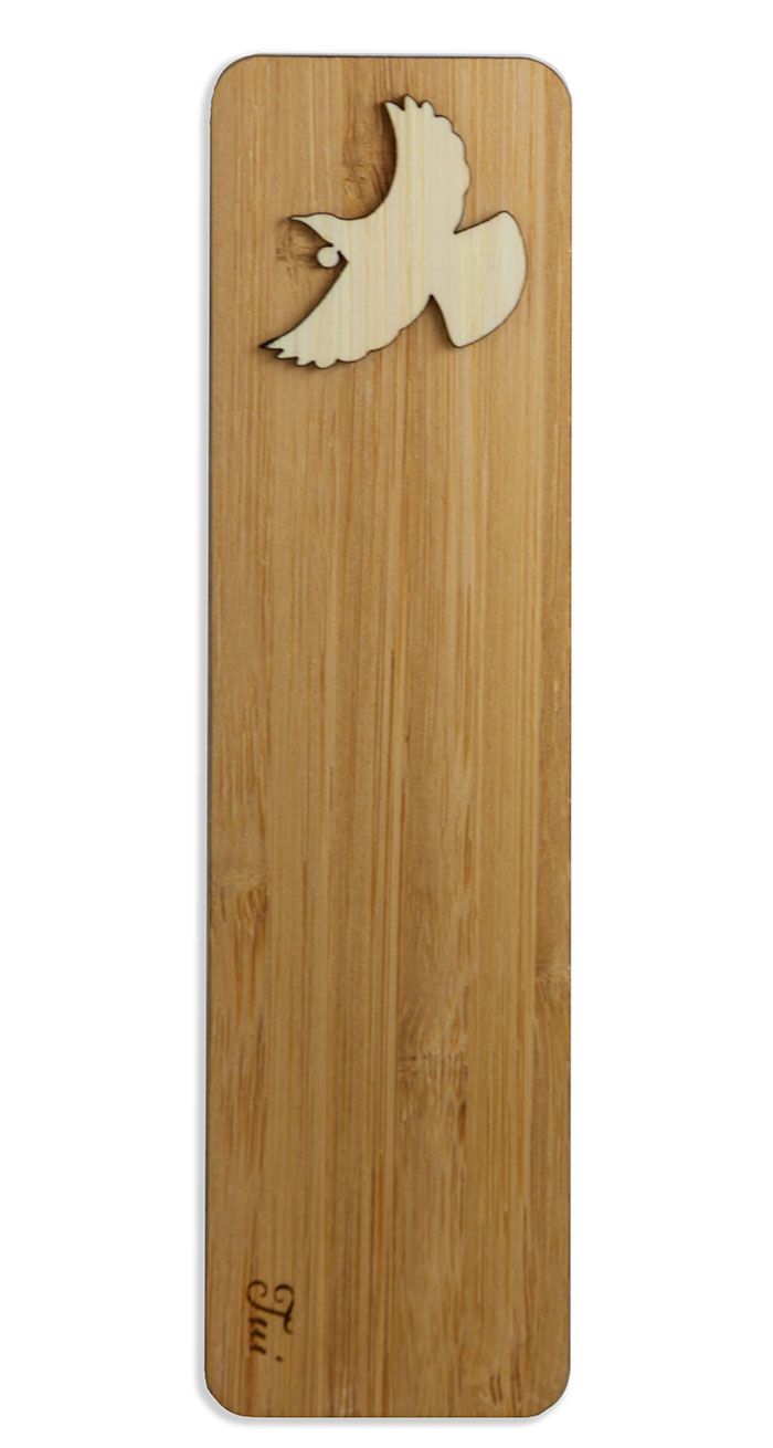 Wooden Tui Bookmark Celebrate New Zealand's iconic native bird with this beautifully crafted wooden bookmark. Hand-finished with intricate detail, the tui design captures the elegance of our most beloved songbird—perfect for the reader who treasures Aotearoa's natural heritage. A thoughtful gift that combines practicality with cultural pride, this bookmark brings a touch of NZ artistry to every page turned.